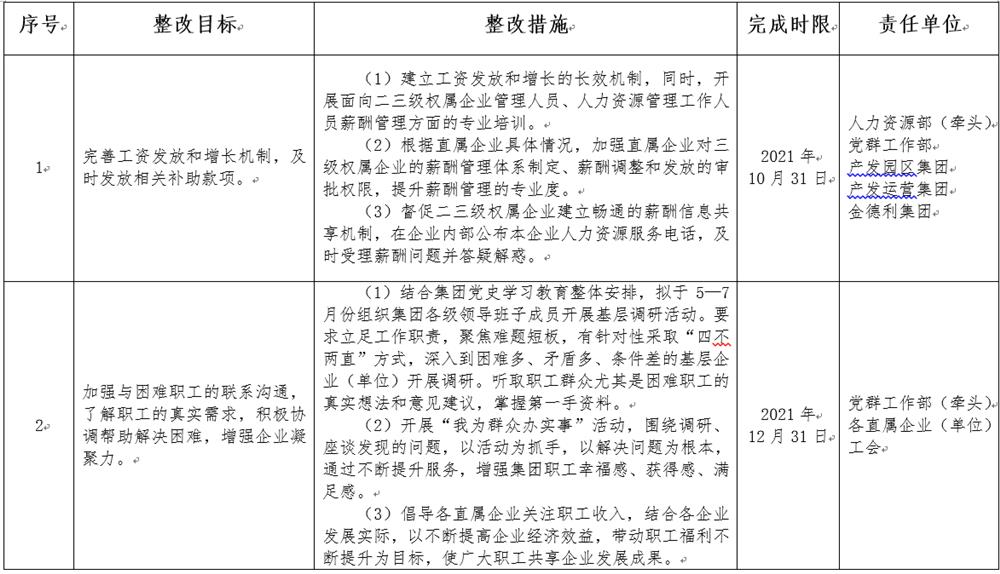 濟南產(chǎn)業(yè)發(fā)展投資集團有限公司民主評議問題整改重點承諾事項